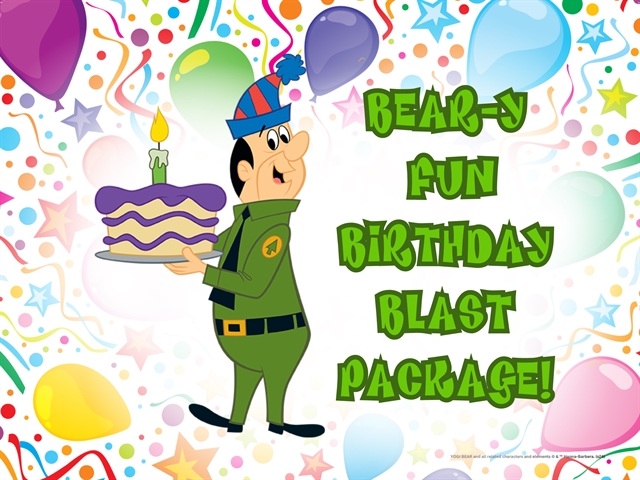 -Personal Visit from one of the Bears!-Signed Birthday Card-Balloon Bouquet (includes 4 latex balloons, 1 mylar balloon, and weight)-Instant Picture sent via Text with our Yogi Cam!-A Collective Happy Birthday Pin to remind you of this day!-A Happy Birthday Yard Sign placed at your site, so others know about your special day!-Private Session of Laser Tag with 8 of your Best Friends or Family, 2 games each.-$50 Players Card for Arcade Alley.-Yogi Bear™ and Friends Tattoos (5)